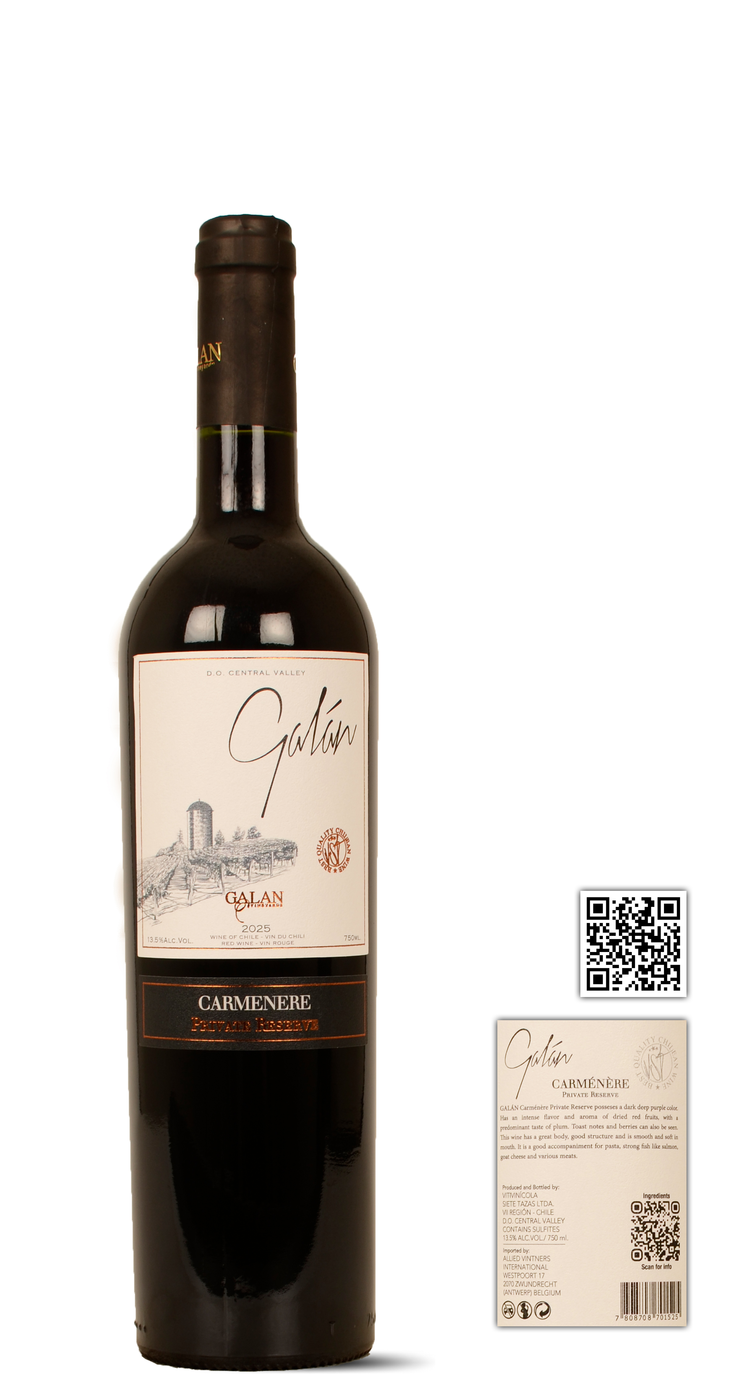 Mooie, diepe, donkere en robijnrode kleur. De neus wordt gedomineerd door gedroogd fruit en pruimen. Maar na walsen ontdekken we ook zwarte bessen, kruiden, meer geroosterde tonen en een pittig pepertje. Wijn met veel body en een aangenaam zacht karakter. Lekker geroosterde en sappige afdronk.