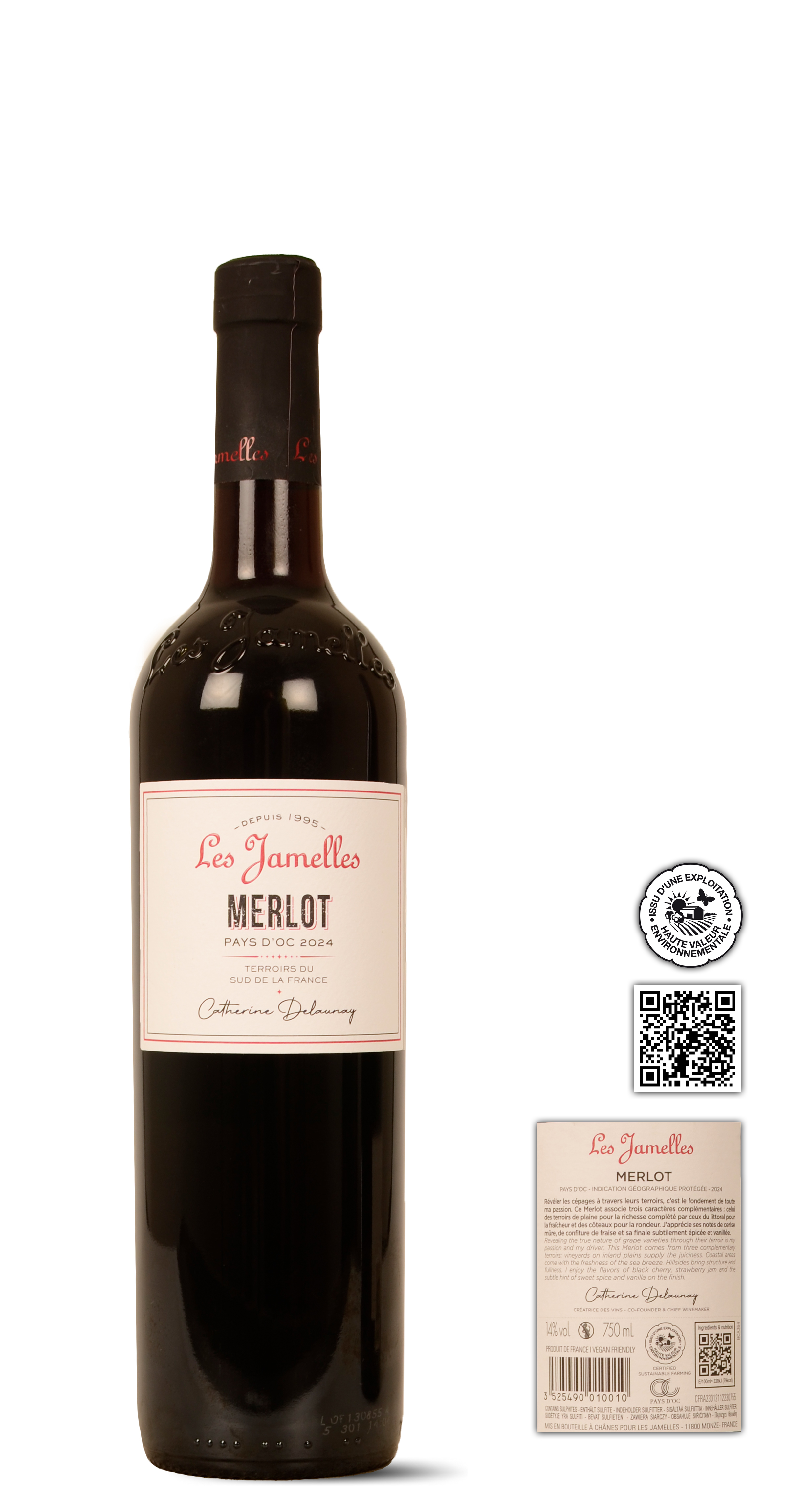 Donkerrode kleur. Aroma's van zwarte kersen en aardbeien met fijnere impressies van kerstomaatjes, gebak en karamel. Kruidige impressies van kaneel en nootmuskaat. Ronde, volle en vriendelijke stijl. Merlot maakt hier zijn naam als allemansvriend helemaal waar.